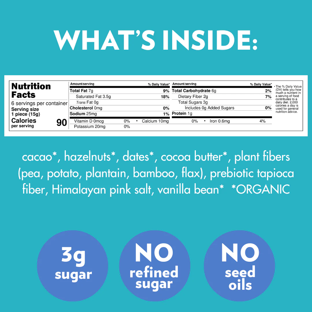 NO ADDED SUGAR | Naturally sweetened with organic dates | Low carb | Gluten-Free | Soy-Free | NO Palm oil | Sustainably & ethically sourced